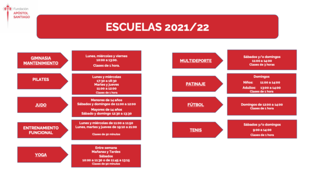 Estimados Beneficiarios:   Nos complace comunicarles el inicio de las Escuelas en el Centro de Deportes para la  Temporada 2021/22.   Con el fin de mantener una óptima organización necesitamos que lean con atención las indicaciones que a continuación exponemos.   Desde la Fundación Apóstol Santiago apelamos a su responsabilidad, prudencia, colaboración y compromiso en…